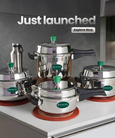 Apart from natural material cooking pots and steel induction pans, The Indus Valley has multiple choices in stainless steel pressure cooker. They are: