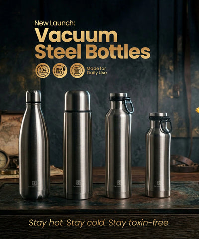 The 2.2 L water bottle is made from 18/8 premium, food-grade stainless steel. It has no harmful chemical coatings. It is 100% BPA-free. One of the best water bottles at The Indus Valley that gives only the pure taste of water.