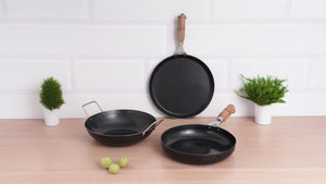 The Indus Valley’s iron pan with wooden handle is multipurpose that can be used on both gas and induction. It is useful to make sabzi, hakka noodles, gravy, omelette or shallow fry snacks.