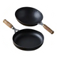 100% Pure Iron Wok with Wooden Handle, Toxin-free Sheet Iron, Pre-seasoned, 2.2/4.2L, 1/1.5kg