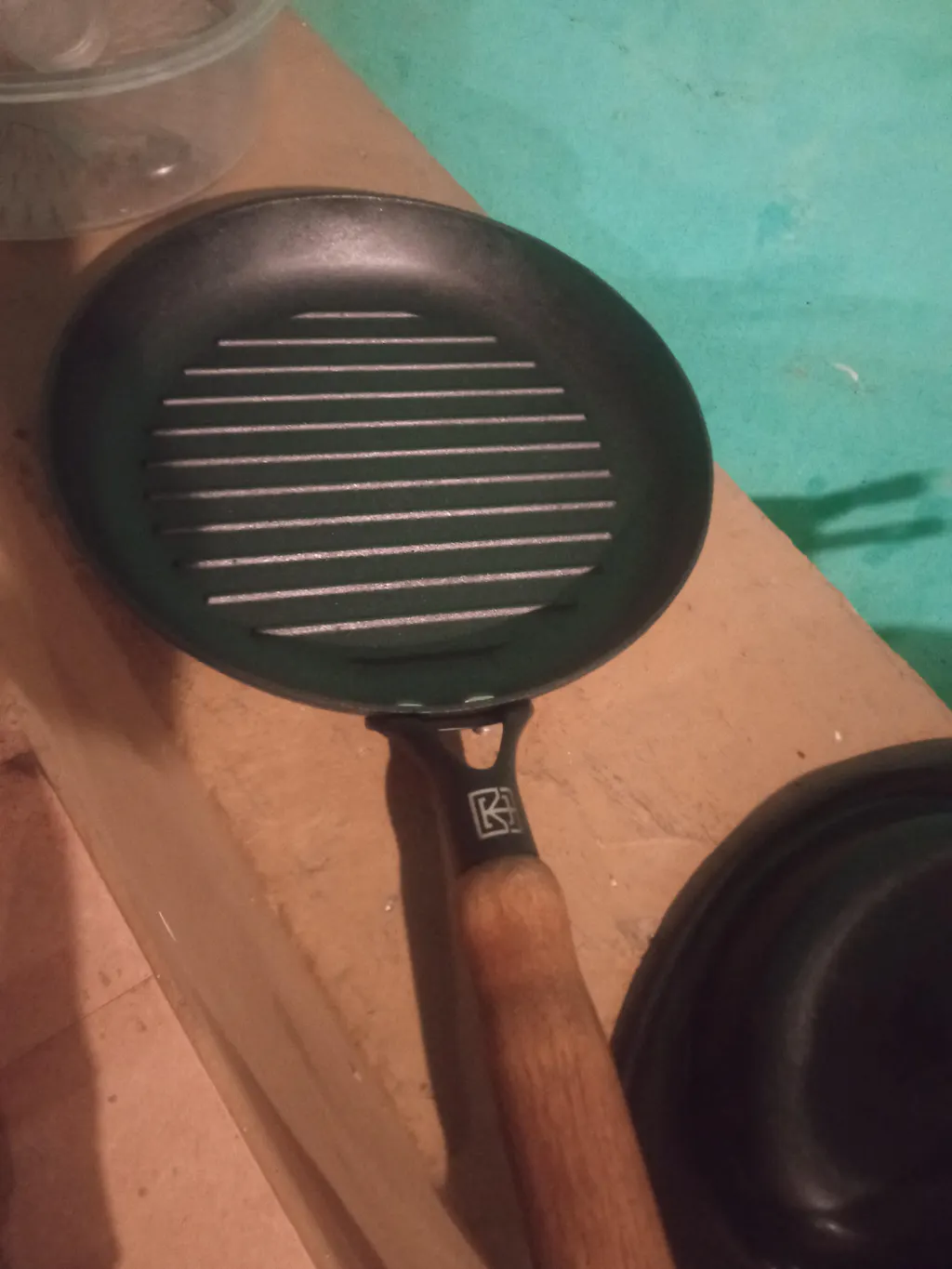 - 1. Boil water in the new cast iron grill pan.