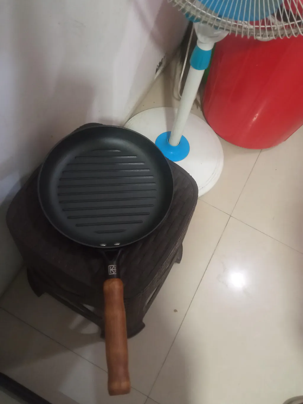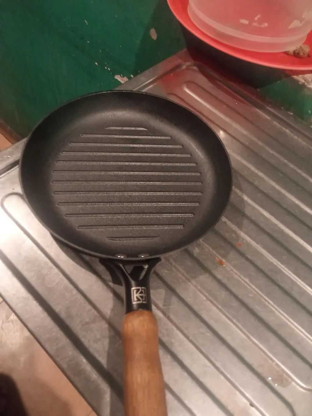 - 1. Wash cast iron grill pan with soapy water & a scrub pad.