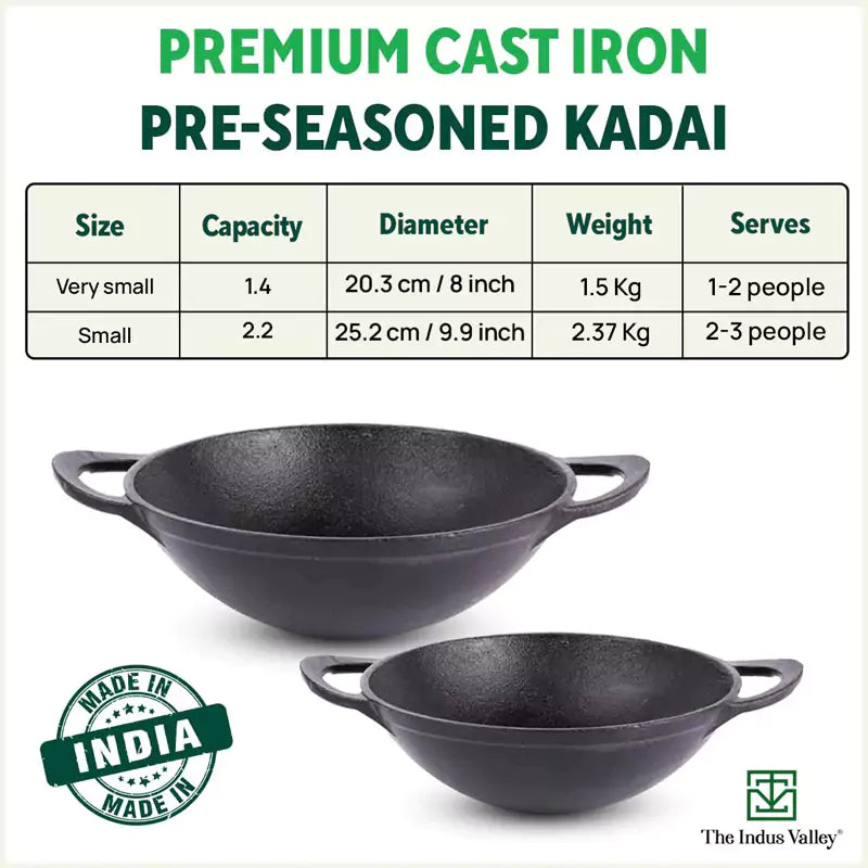 Product Name | Preseasoned Cast iron kadai with Curved handle - 8 inch |