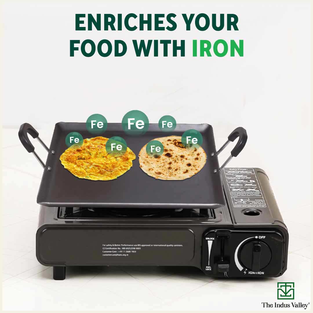 - Cooking food in iron utensils is safe and healthy. Sheet iron tawa adds iron to food that is good for our health. Thus, it is a healthier alternative to non-stick cookware that has harmful chemical coatings.