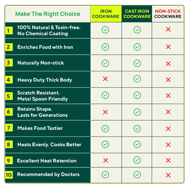 - MONEY SAVING INVESTMENT: Pure Iron cookware lasts for generations & saves more than Rs 20,000 spent on non-stick which hardly lasts for 2 years.