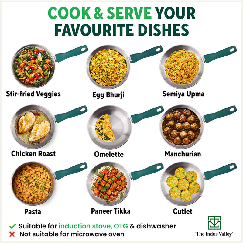 - 🍳MULTI-PURPOSE COOKWARE: Trust this best quality stainless steel fry pan for cooking a variety of dishes such as stir-frying vegetables, omelettes, scrambled eggs or egg bhurj, pasta, manchurian etc.