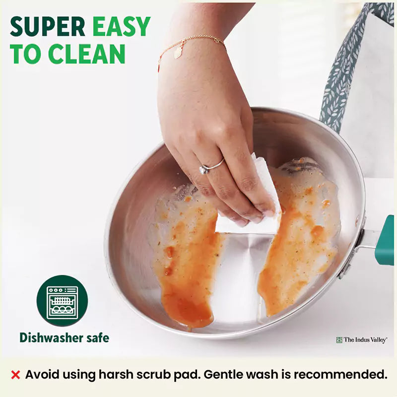 - 💪100% FOOD SAFE: The Indus Valley’s Premium Stainless Steel Fry Pan with Tri-ply Sandwich Bottom is 100% food-safe; with no chemical coating.