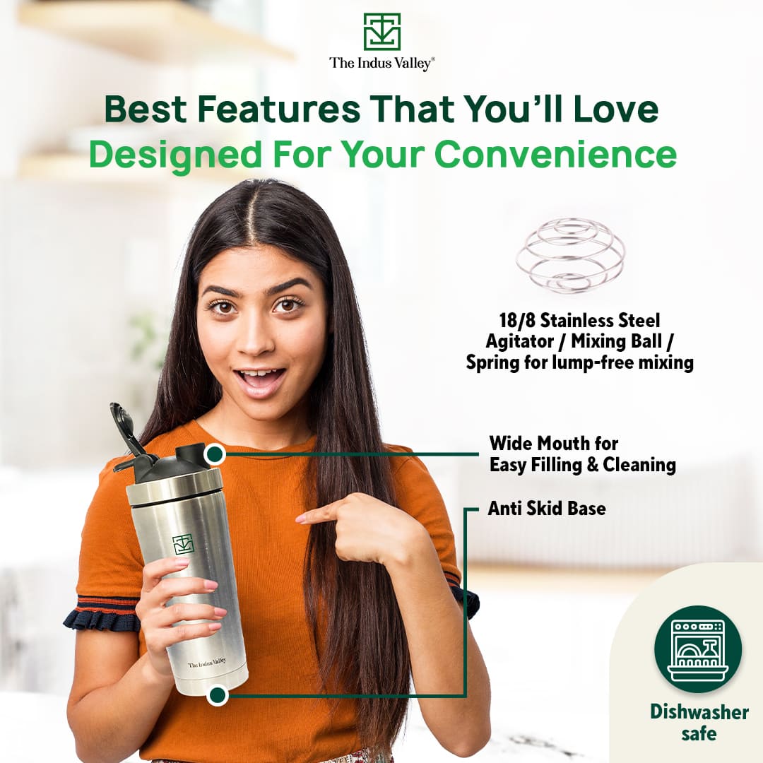 • Vacuum Insulated Stainless Steel Gym Shaker Bottle with Steel Agitator for Pre/Post Workout, 750ml
