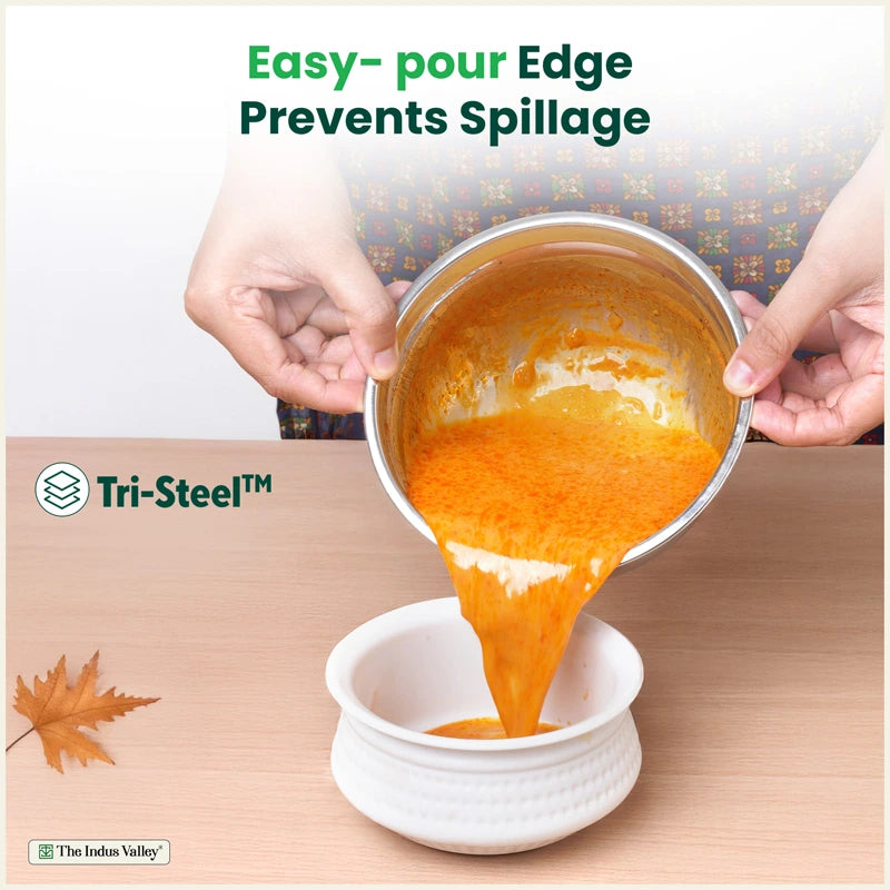 | The Indus Valley Tri-steel Cookware | Low Grade Steel Cookware | Non-Stick Aluminium Cookware | |