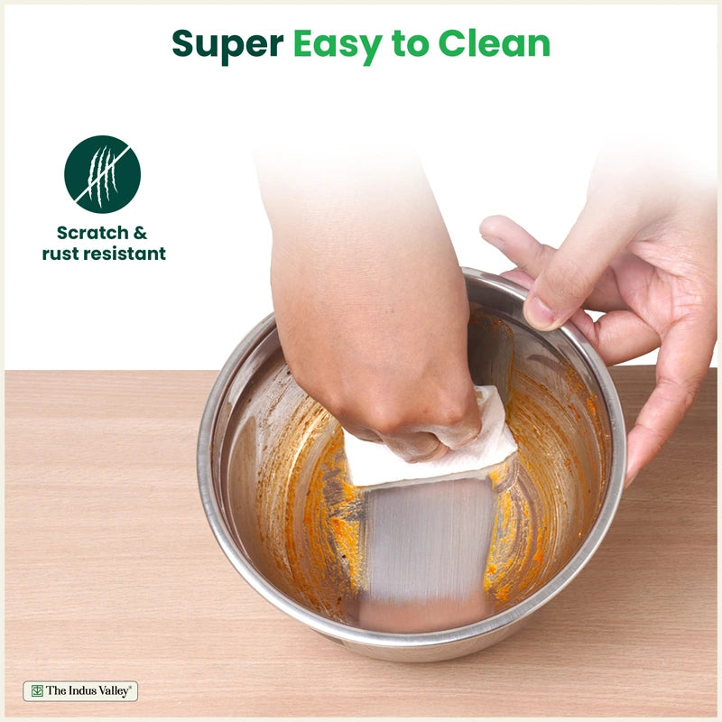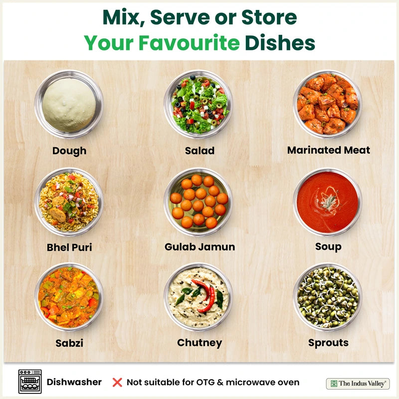 - 💪100% FOOD SAFE: The Indus Valley’s Premium Stainless Steel Mixing Bowl Set is 100% food-safe, with no chemical coating. Made from high-quality, toxin-free stainless steel, it ensures your food stays fresh and safe.