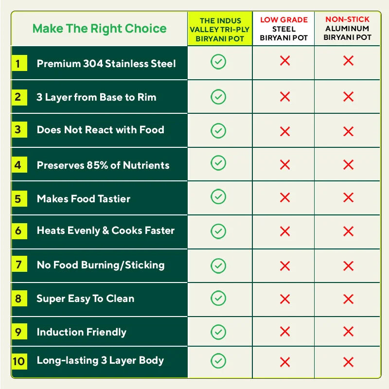 | The Indus Valley Tri-ply Cookware | Low Grade Steel Kadai | Non-stick Aluminium Kadai | |