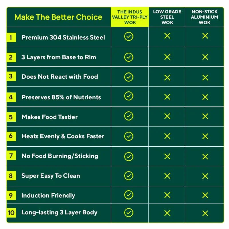 The Indus Valley Tri-ply Cookware | Low Grade Steel Kadai | Non-stick Aluminium Kadai | |